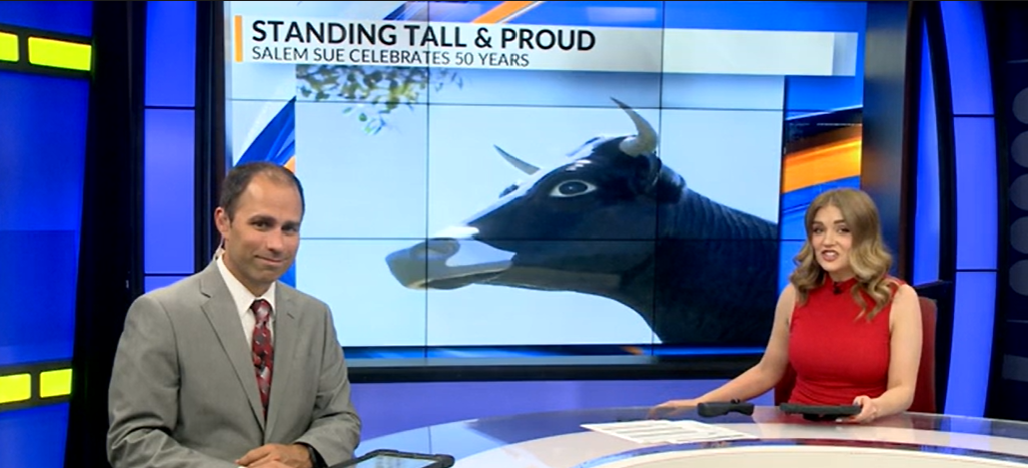 Salem SueThe World’s Largest Holstein Cow Quick Facts 38’ Tall50’ Long Est. 1974$40,000 360 View from Sue Sue’s Story Sue in the News KFYR-TV KX News Businesses Lodging Attractions Parks Salem Sue was erected by the New Salem Lions Club in honor of local dairy farms and the families that Own & operate them. We hope you’ll stop by sometime!“Enjoy the view from Salem sue”!